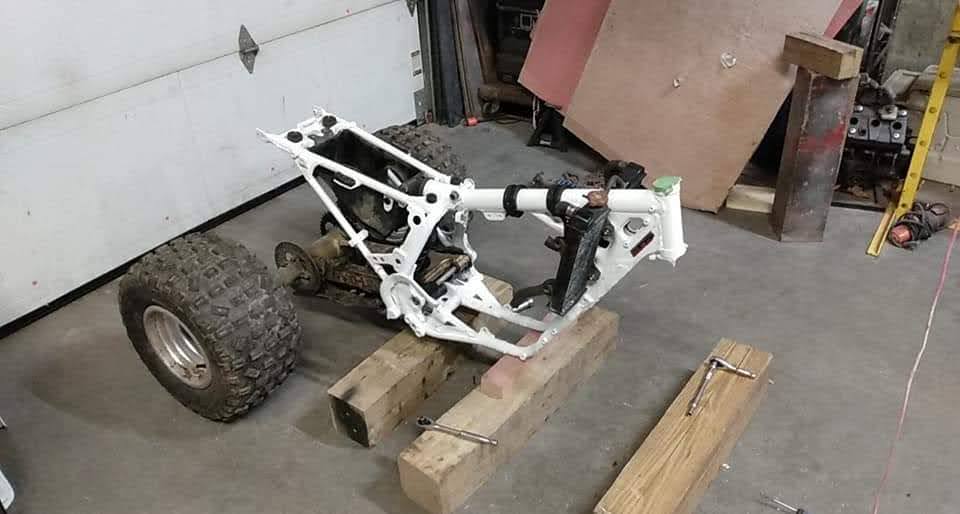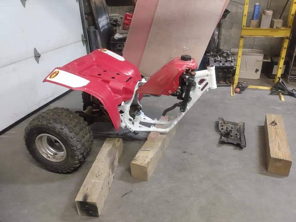 So Jr busted his ass and put together an ‘86 ATC 250R in about a week! Gathered parts he didn’t have from friends, and in 7 days off blood sweat and tears he had everything ready to go.