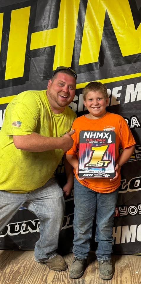 Jr is still getting after it as well. Started the season with his hybrid 500. He put an XR500 motor in a 400 frame. The thing ripped! However he didn’t have the best luck with it. The first two races he took 1st place, but blew the motor in the process. He has parked it for now, funding is not all there to rebuild it just yet as he has blown both of his 500 motors. The 3rd race he piloted a 450 lent out by a fellow racer that is taking the year off. He showed the 450 guys how it’s done, taking yet another 1st place. Had to make a few adjustments to the bike, but they made them quickly at the track. The muffler spit out its packing and Mom made a joke about it loosing a tampon string, as it was dragging behind the bike.